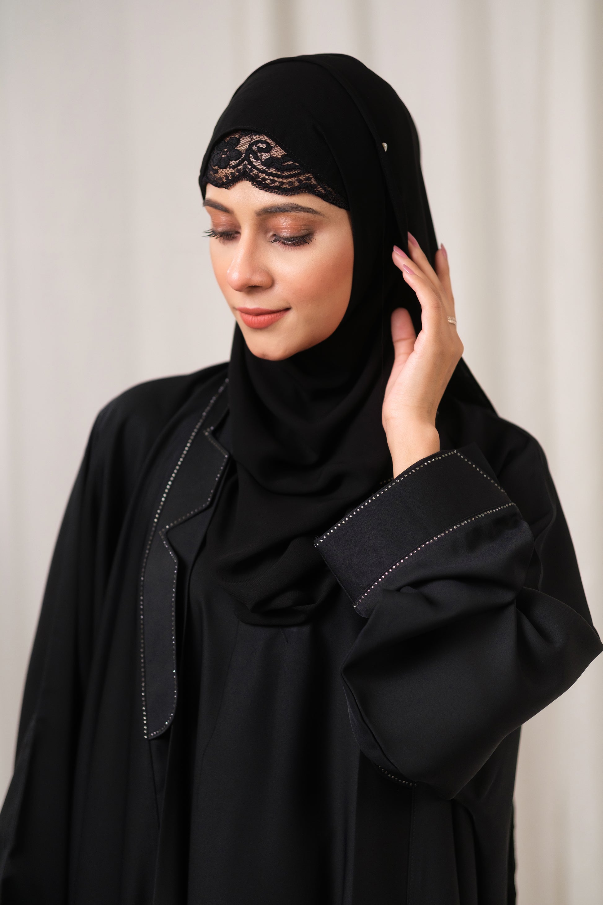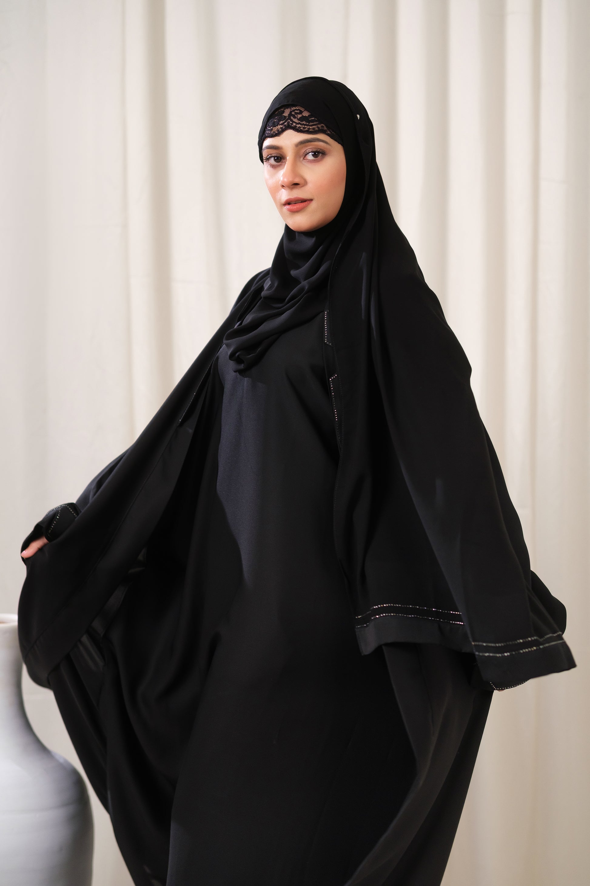 ✓ The Apex Edge Abaya (Imported Nidha) ✓ Matching Premium Black Chiffon Hijab |