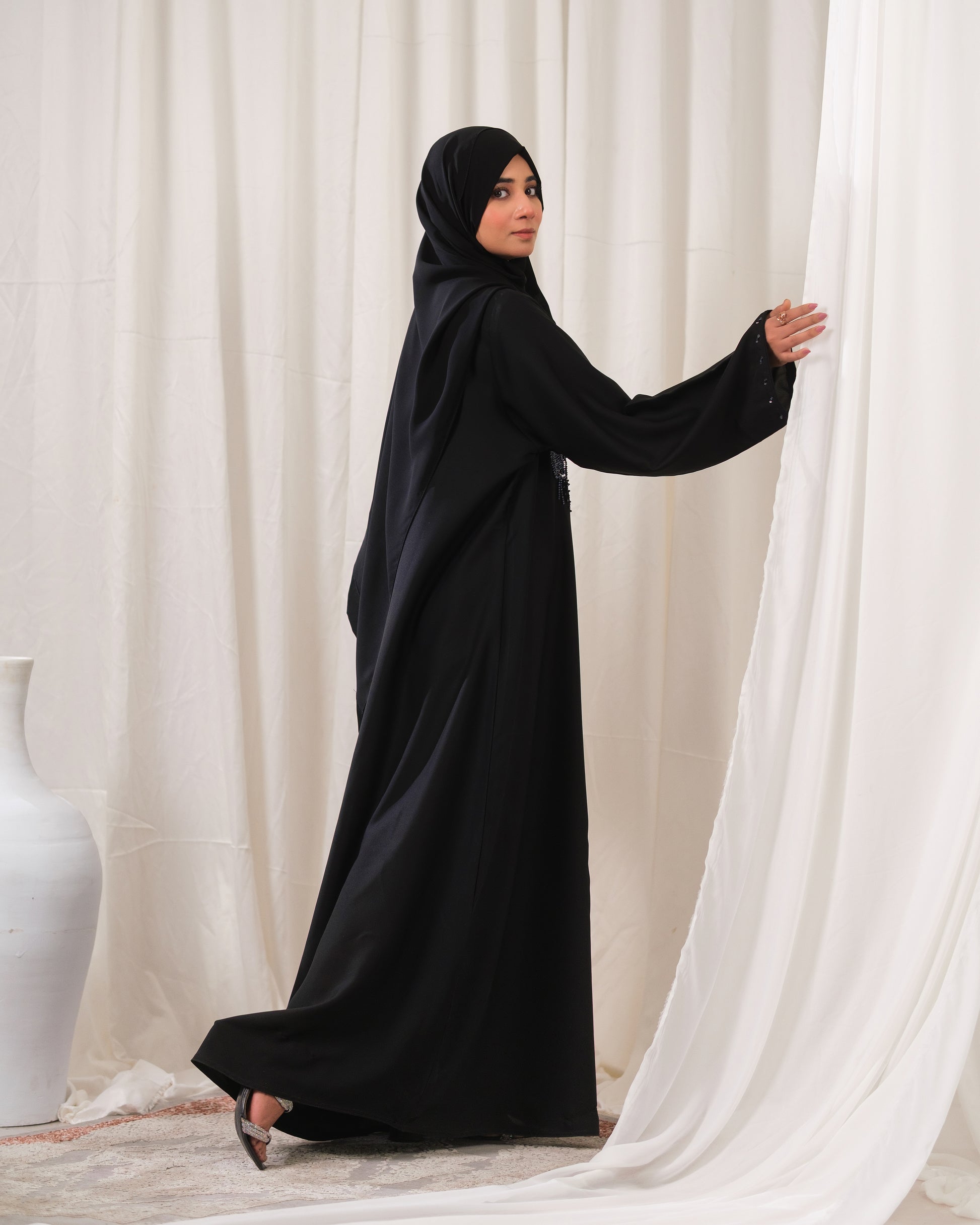 We Stand By Our Craftsmanship. Every abaya is rigorously inspected, guaranteeing the beadwork is securely attached and the Nidha fabric maintains its pristine black color and superb drape. Expect a luxurious garment ready for your most special events.