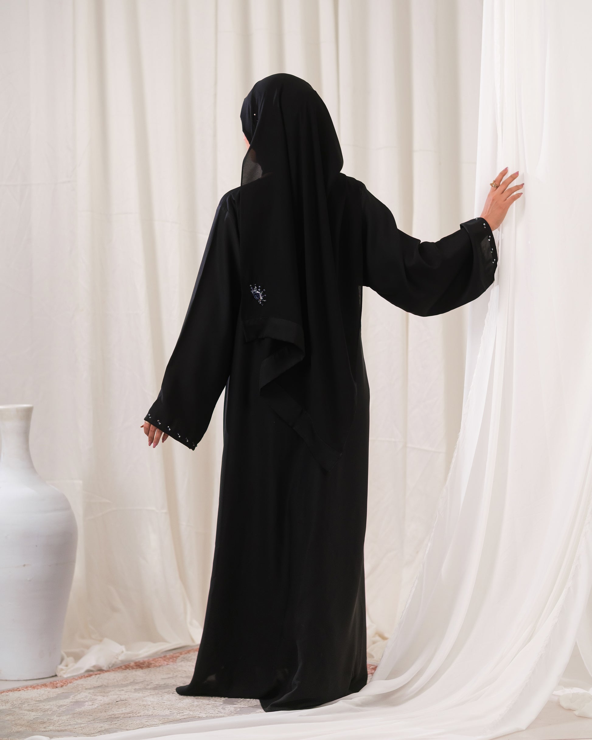 β The Cosmic Trail Abaya (ImportedNidha Fabric) β Matching Premium Black Chiffon Hijab |