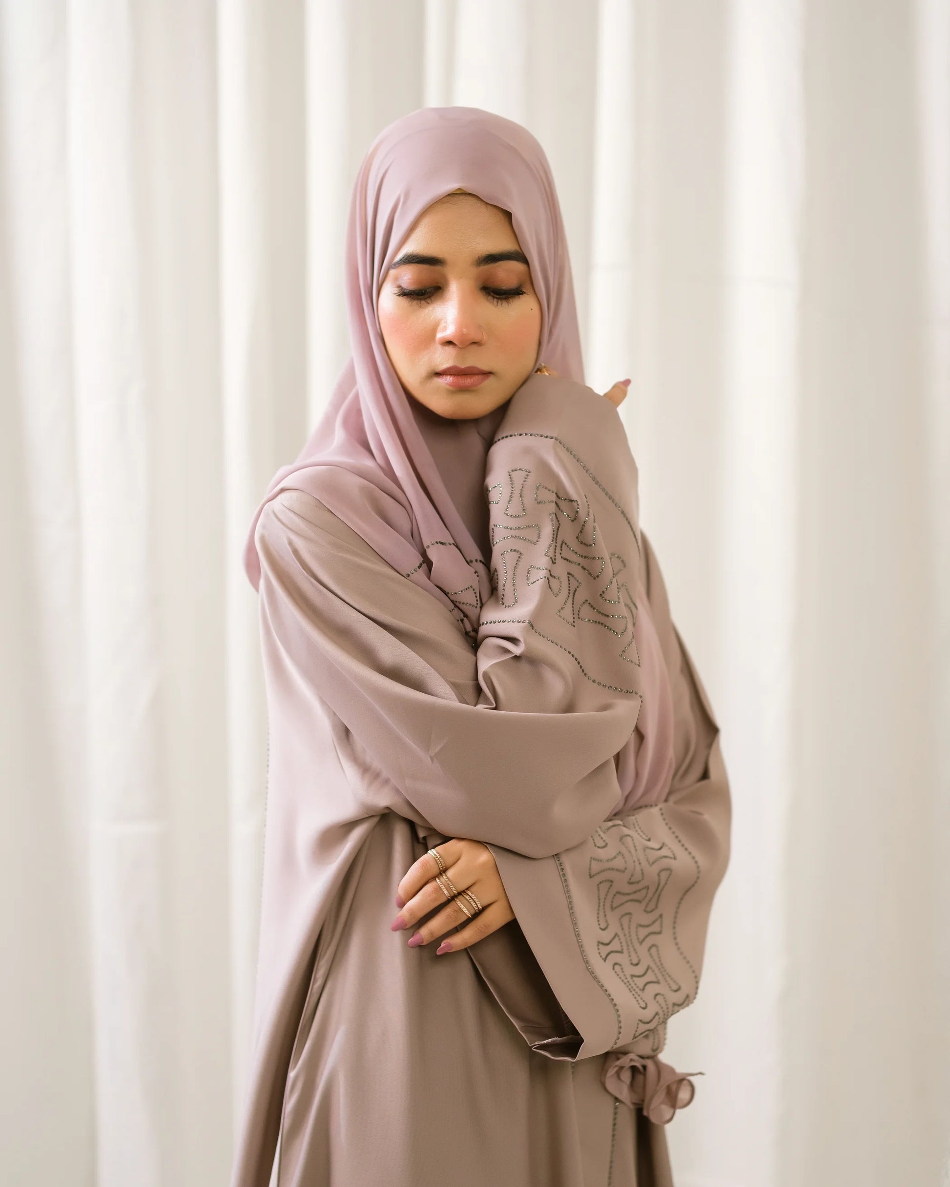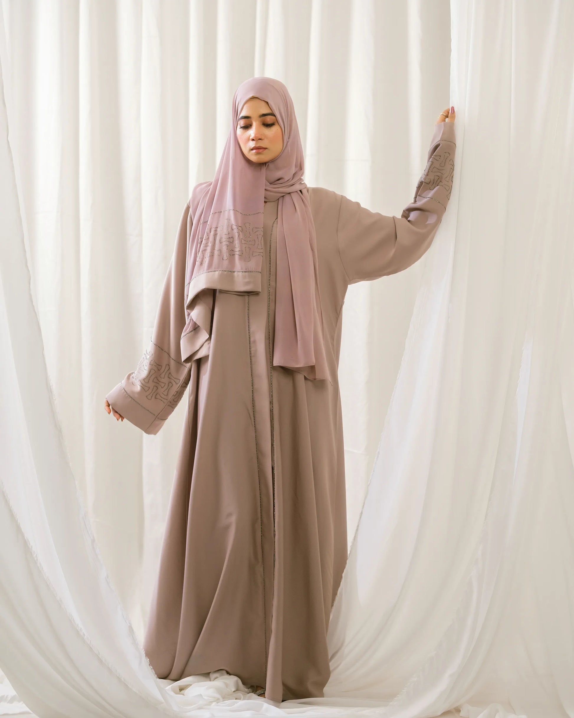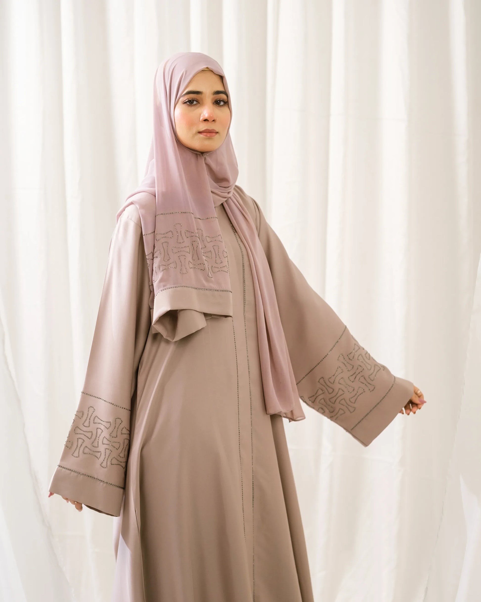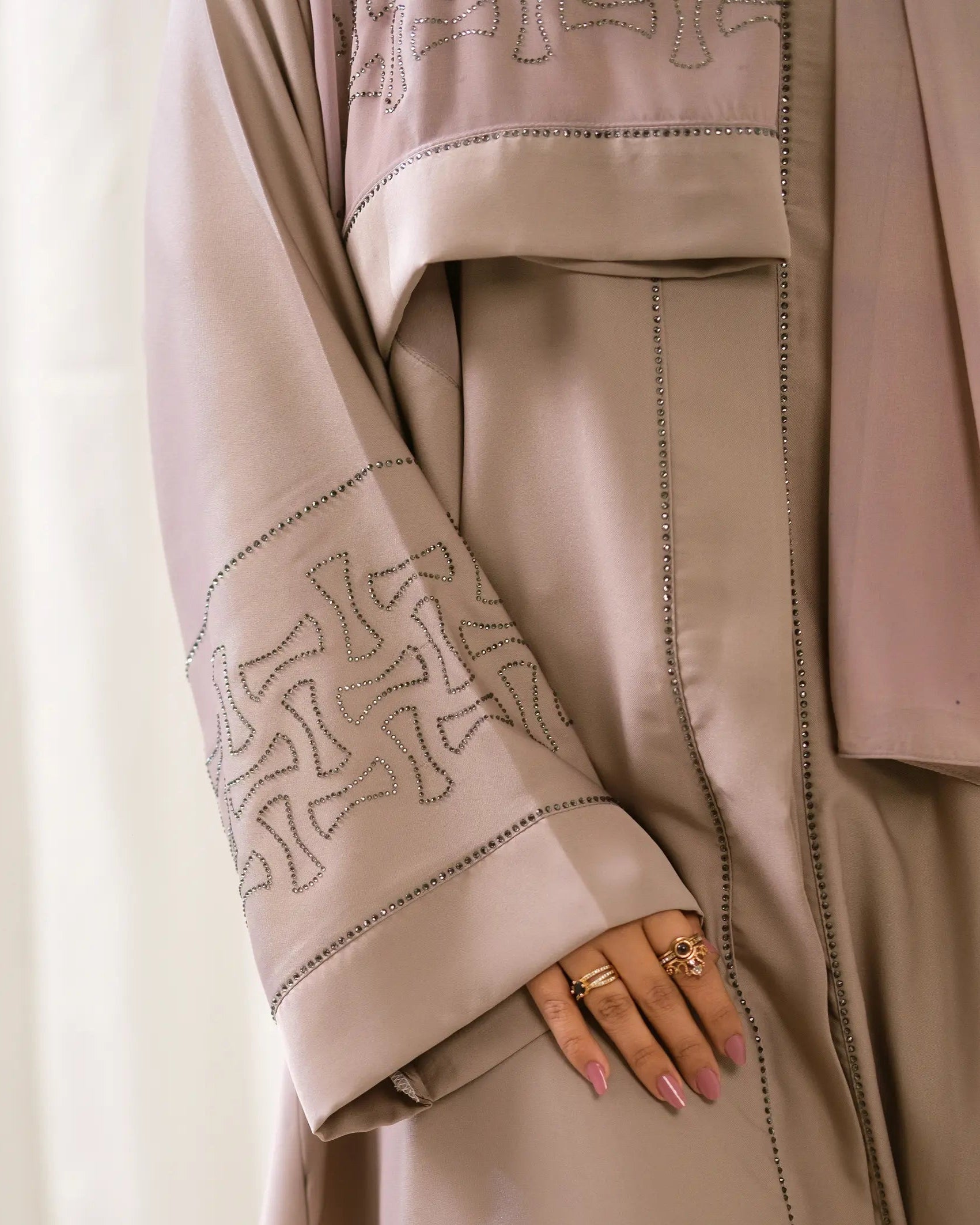 The Crystal Lattice Abaya is a timeless powerhouse. Because the "lattice" design is geometric rather than trend-based, and the beige shade is a perennial neutral, this garment remains a relevant and high-value part of your evening wardrobe for years.