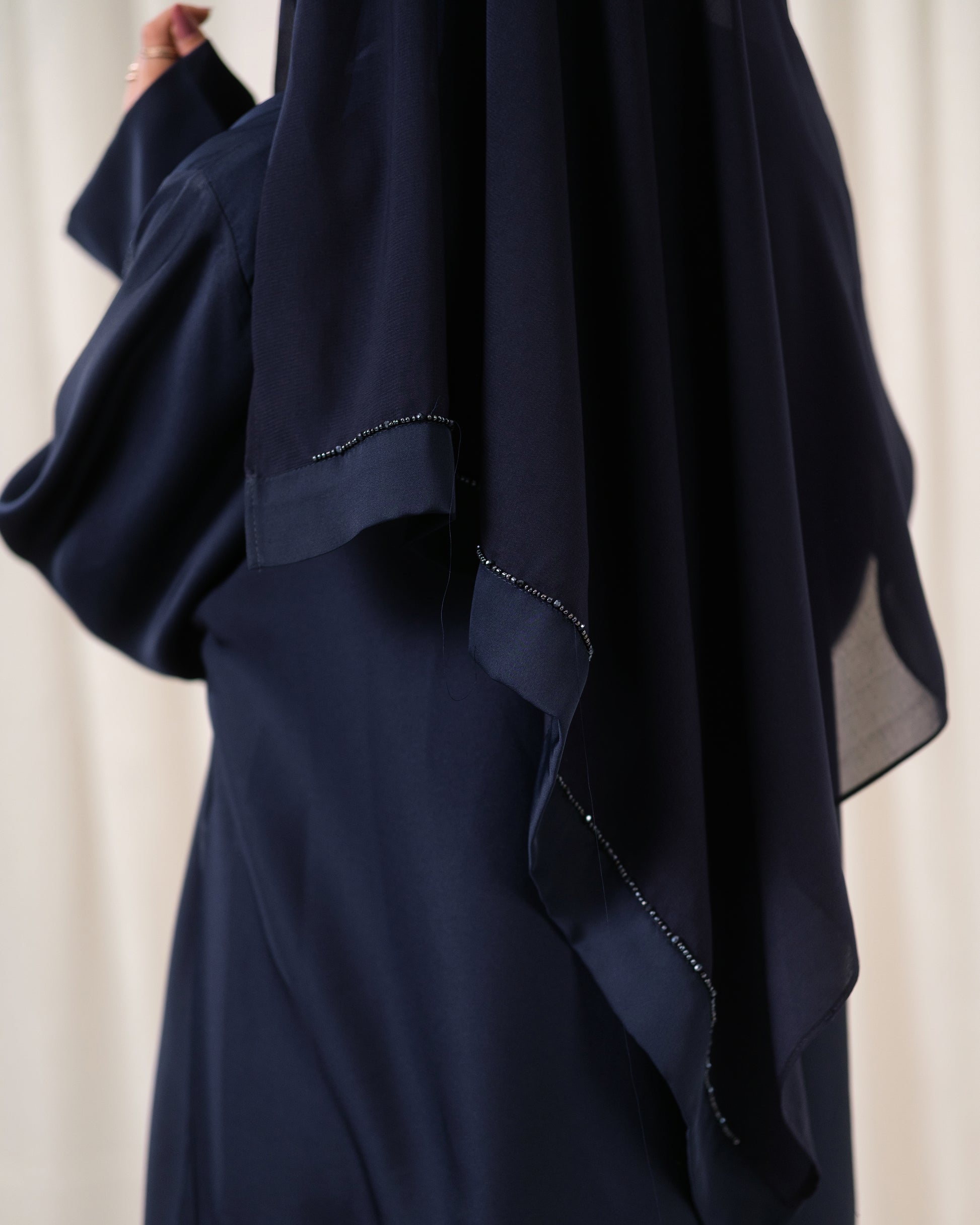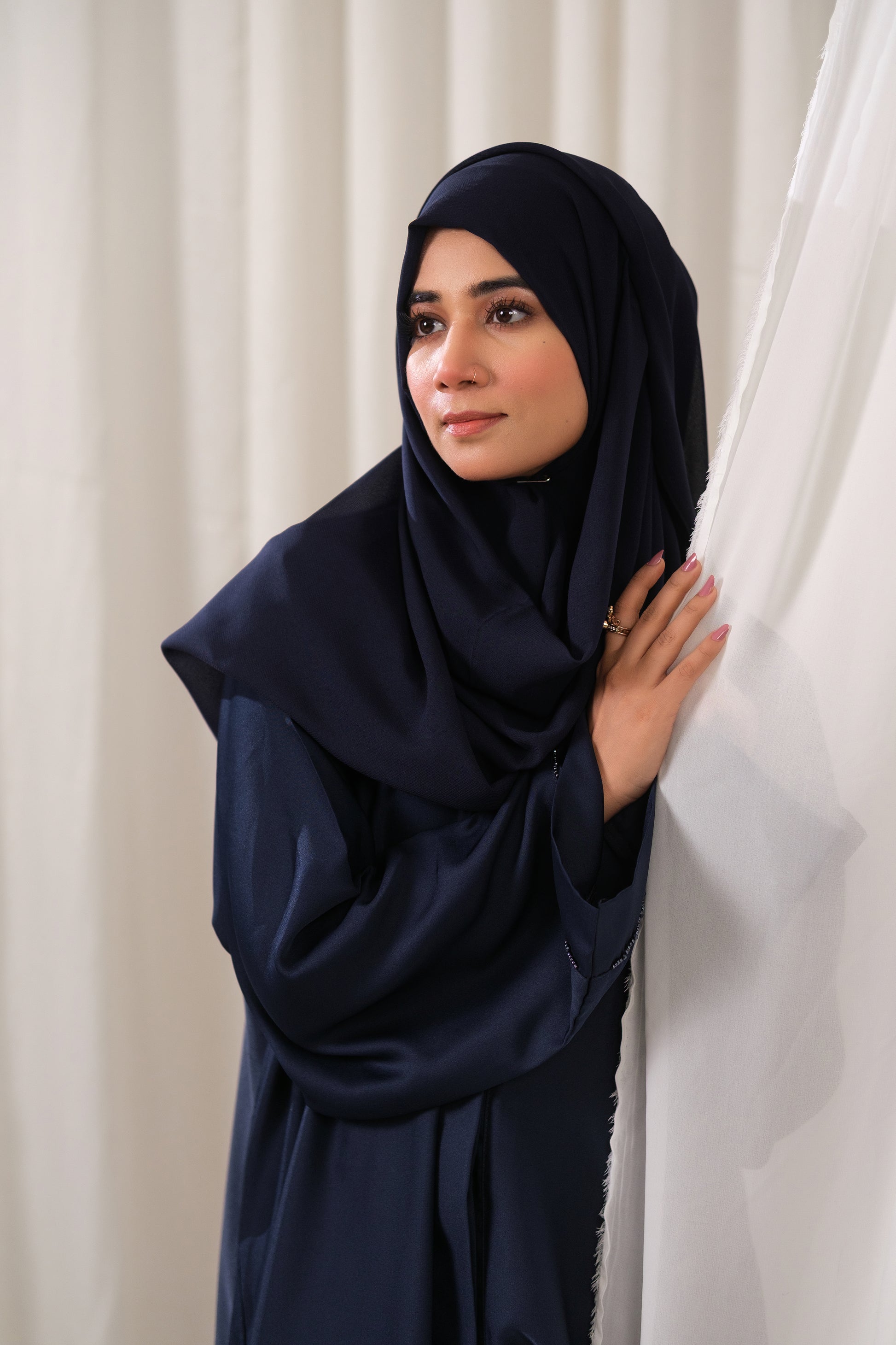 Perfectly Matched: Comes complete with a coordinating Navy Chiffon Hijab for a polished, monochromatic look.