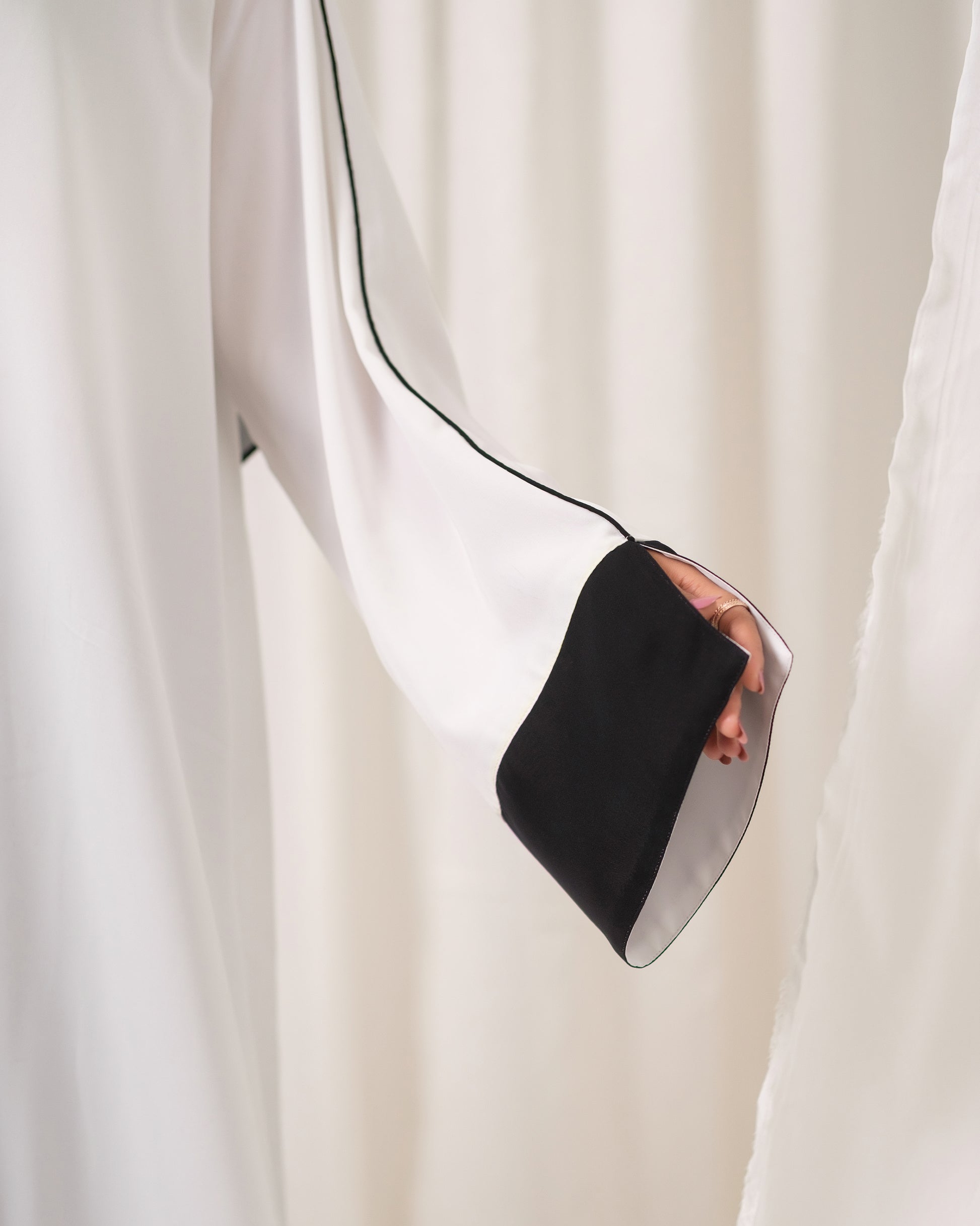 Most statement abayas are trend-dependent—beautiful for one season, then relegated to the back of your closet. Black and white is different.
