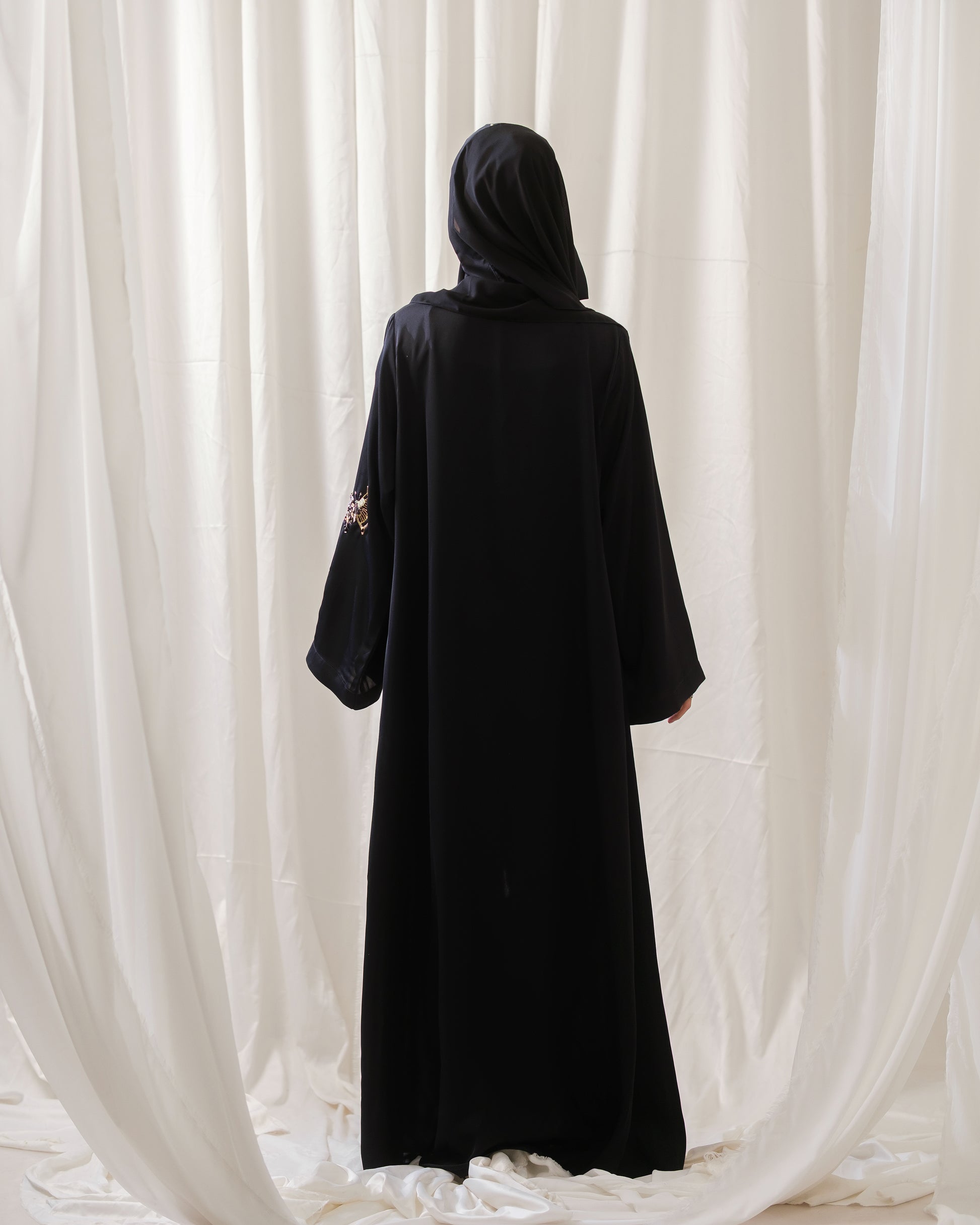 The Monarch Abaya is an investment in long-term elegance. Its classic black color and timeless silhouette ensure it remains relevant across seasons and years. Its sophisticated, artistic beadwork on the front and one sleeve makes it a true statement piece, significantly lowering your cost per wear over its long life.